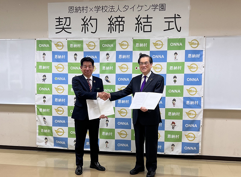 沖縄県恩納村と学校法人タイケン学園の契約締結式が行われました。