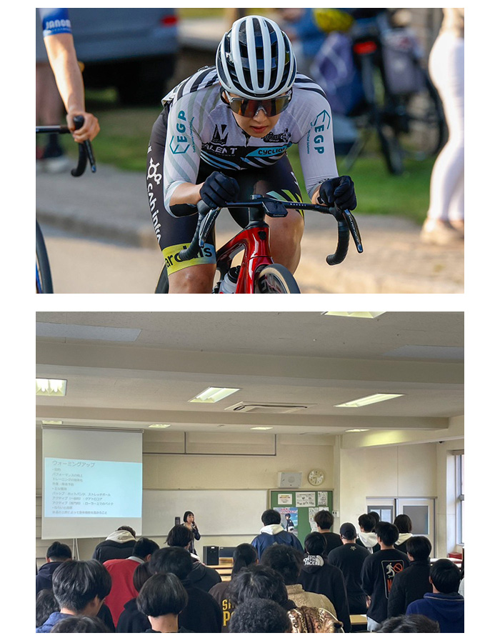 今年度も本学にて、東京五輪、パリ五輪の経験から学んだこと、モチベーションやメンタルを良い状態に保つ方法に加え、ストレッチや呼吸の方法など実践を交えながらの特別講義を行い、学生も多くの学びを得ようと真剣に耳を傾けていました。梶原さんは2028年ロサンゼルス五輪の出場、メダル獲得を目指しています。今後も国内外の大会に出場予定で、活躍が期待されます。