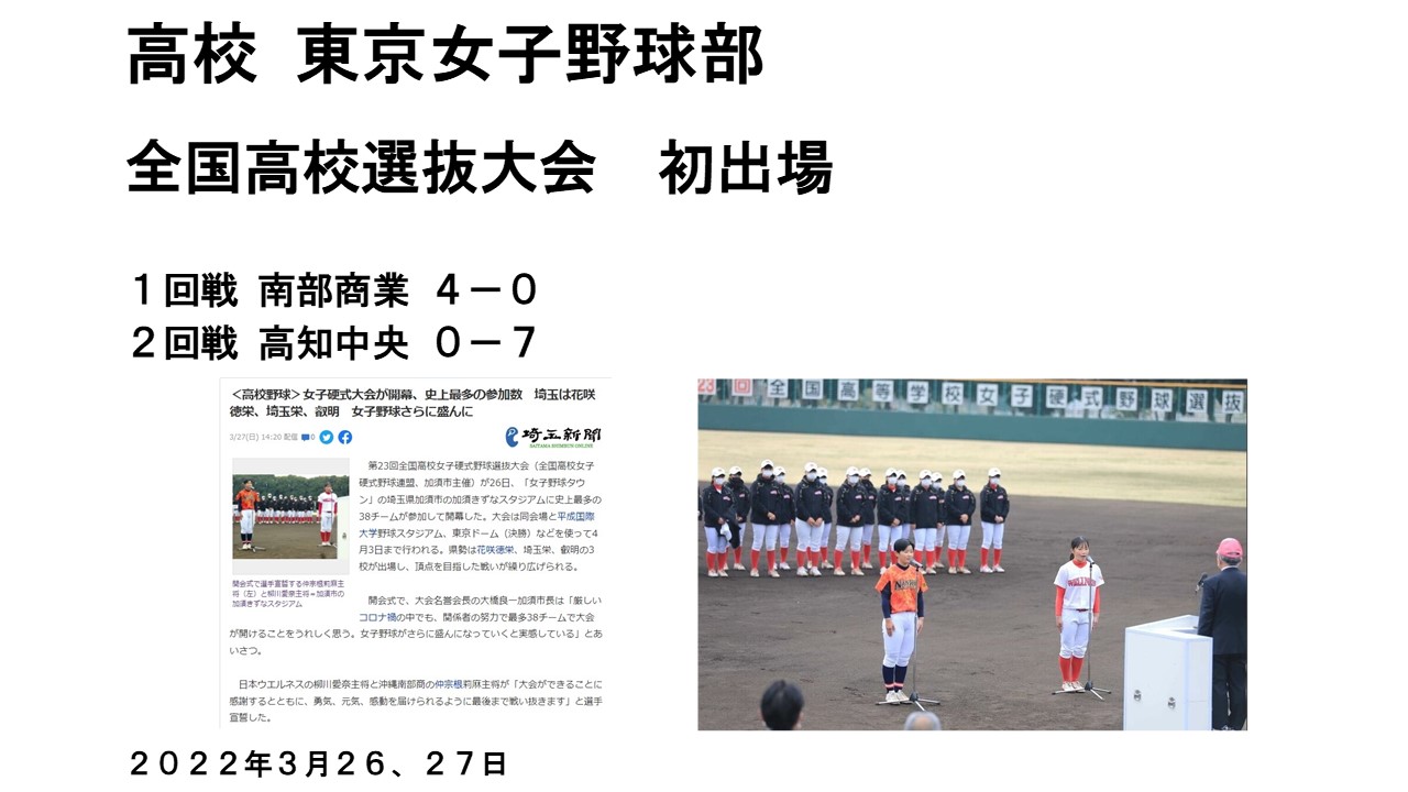 東京女子野球部全国高校選抜大 会初出場